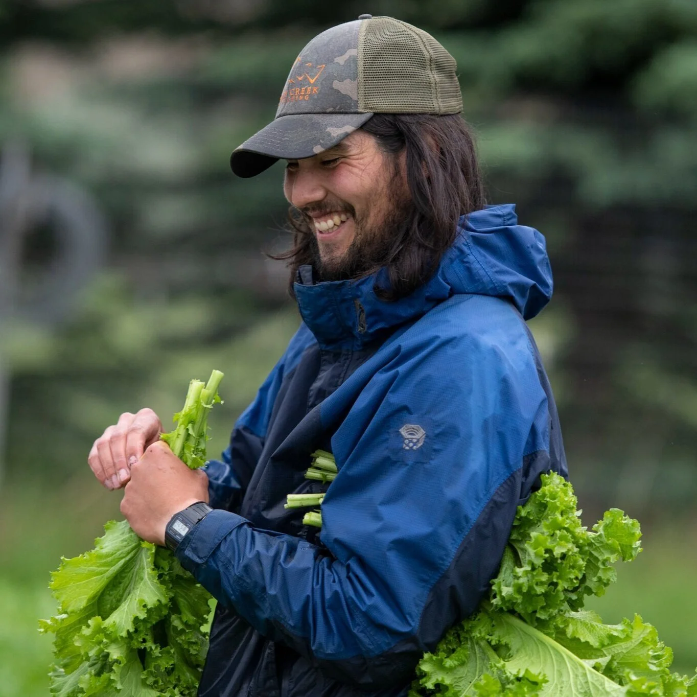 Originally from North Carolina, Anna took her first farming job on a whim in 2020, working at Foothill Farm in Saint Ignatius. She quickly fell in love with farming -- and with Montana. Since then, she has moved from Vermont to California to Washington, finally returning to Montana to manage Foothill Farm. She loves how farming connects her to the land, her body, and others in her community. In her free time she enjoys food projects, looking for birds, crafting, and walks in the mountains.